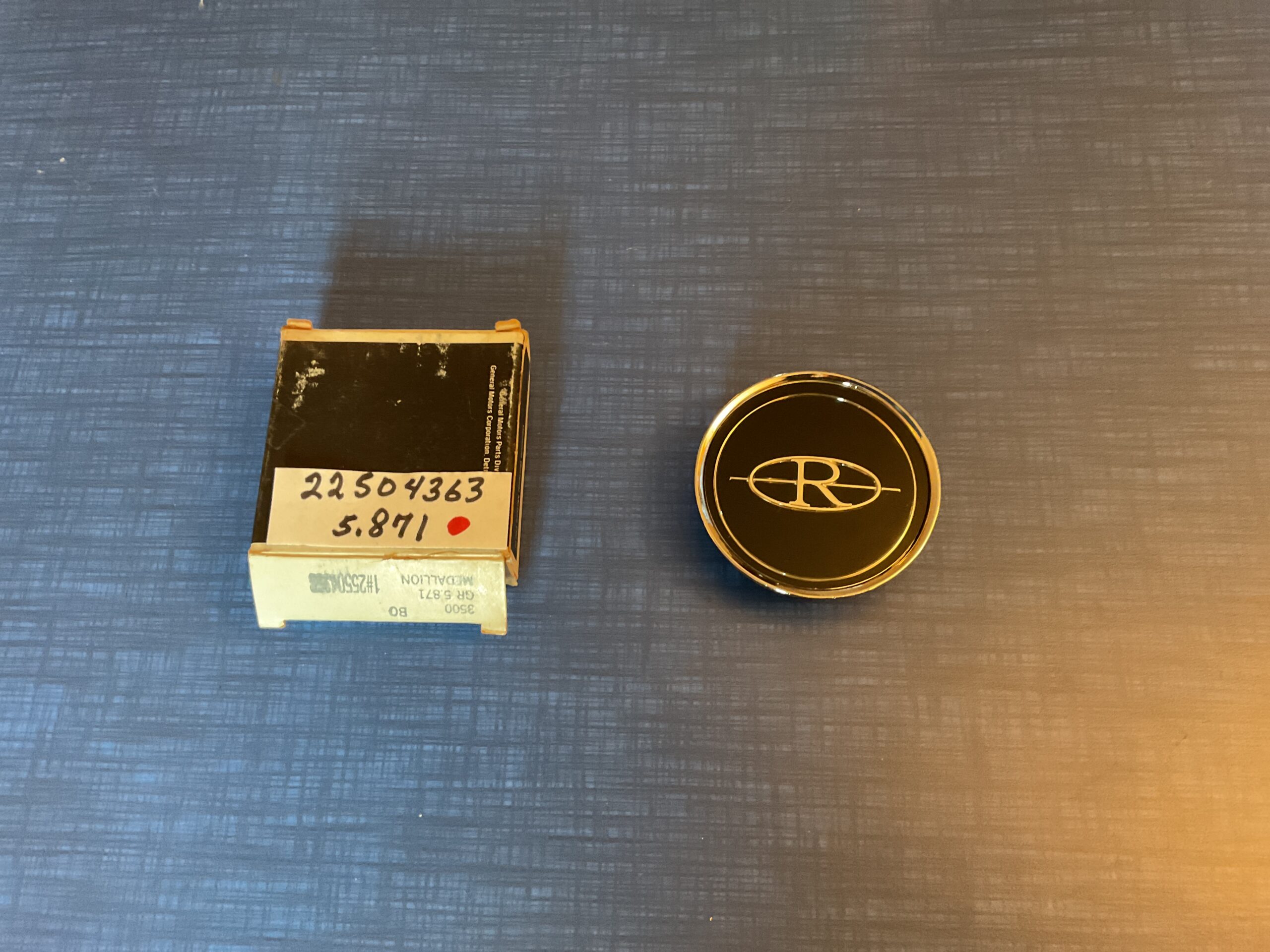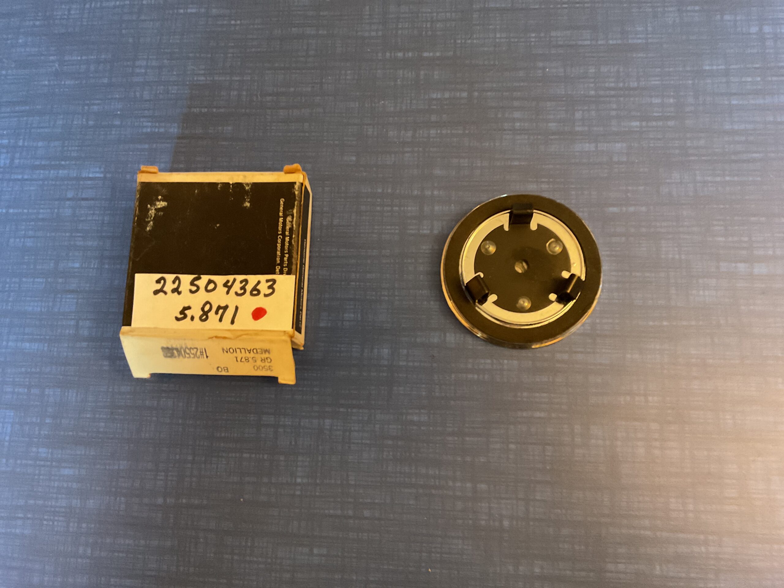 This new old stock simulated wire wheel cover lock medallion with cup was manufactured by General Motors for use on the following models: