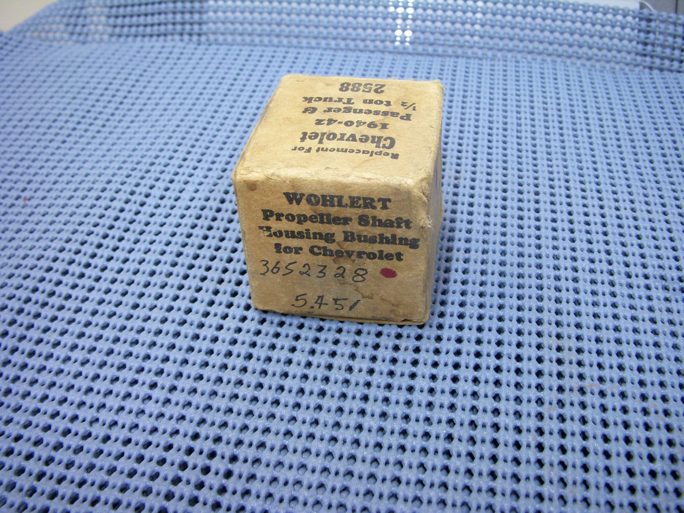 This new old replacement stock propeller shaft housing (torque tube) rear bushing was manufactured by Wohlert for use on the following General Motors models: