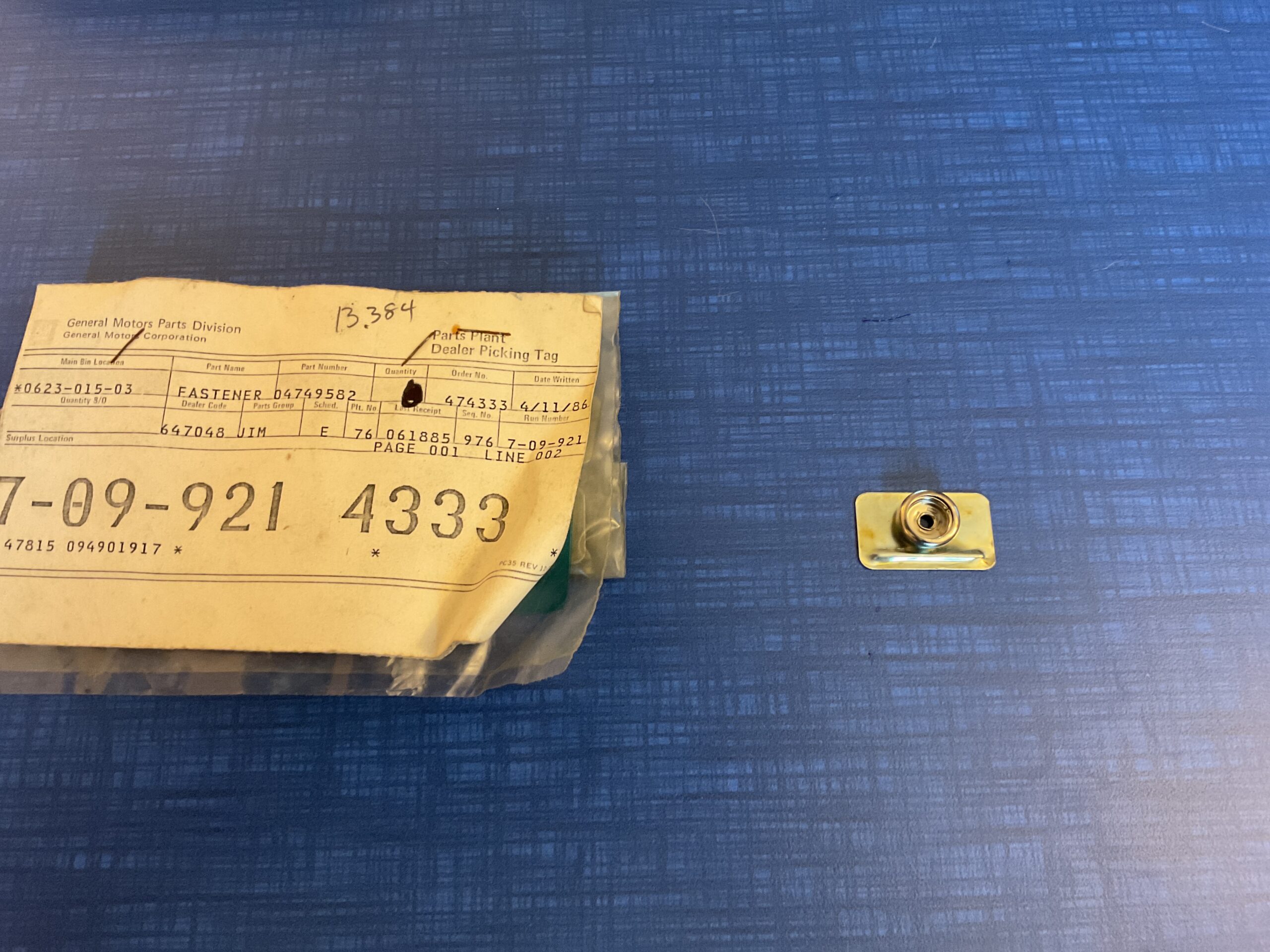 This new old stock convertible top dust boot cover fastener was manufactured by General Motors for use on the following models: