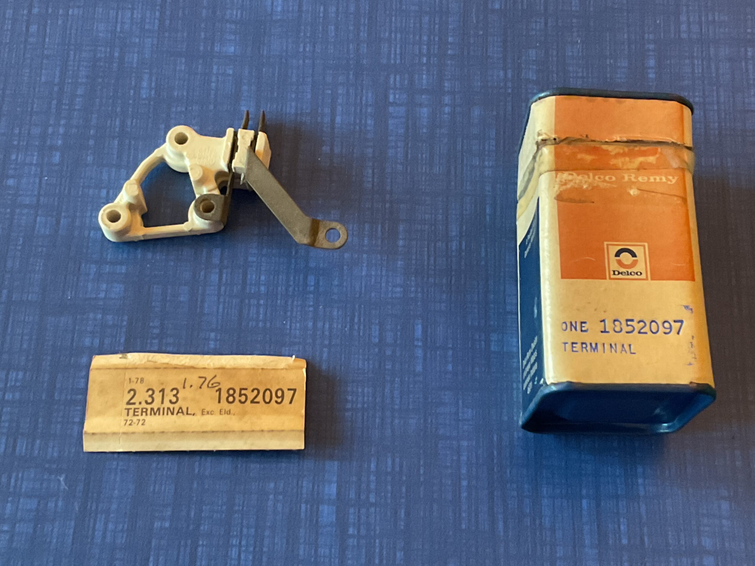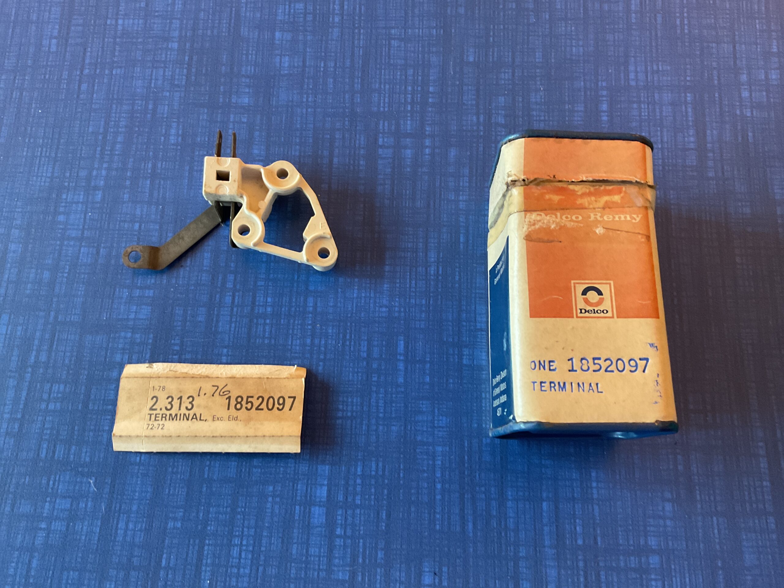 This new old stock Delco alternator field and indicator light terminal and spacer was manufactured by General Motors for use on the following models:
