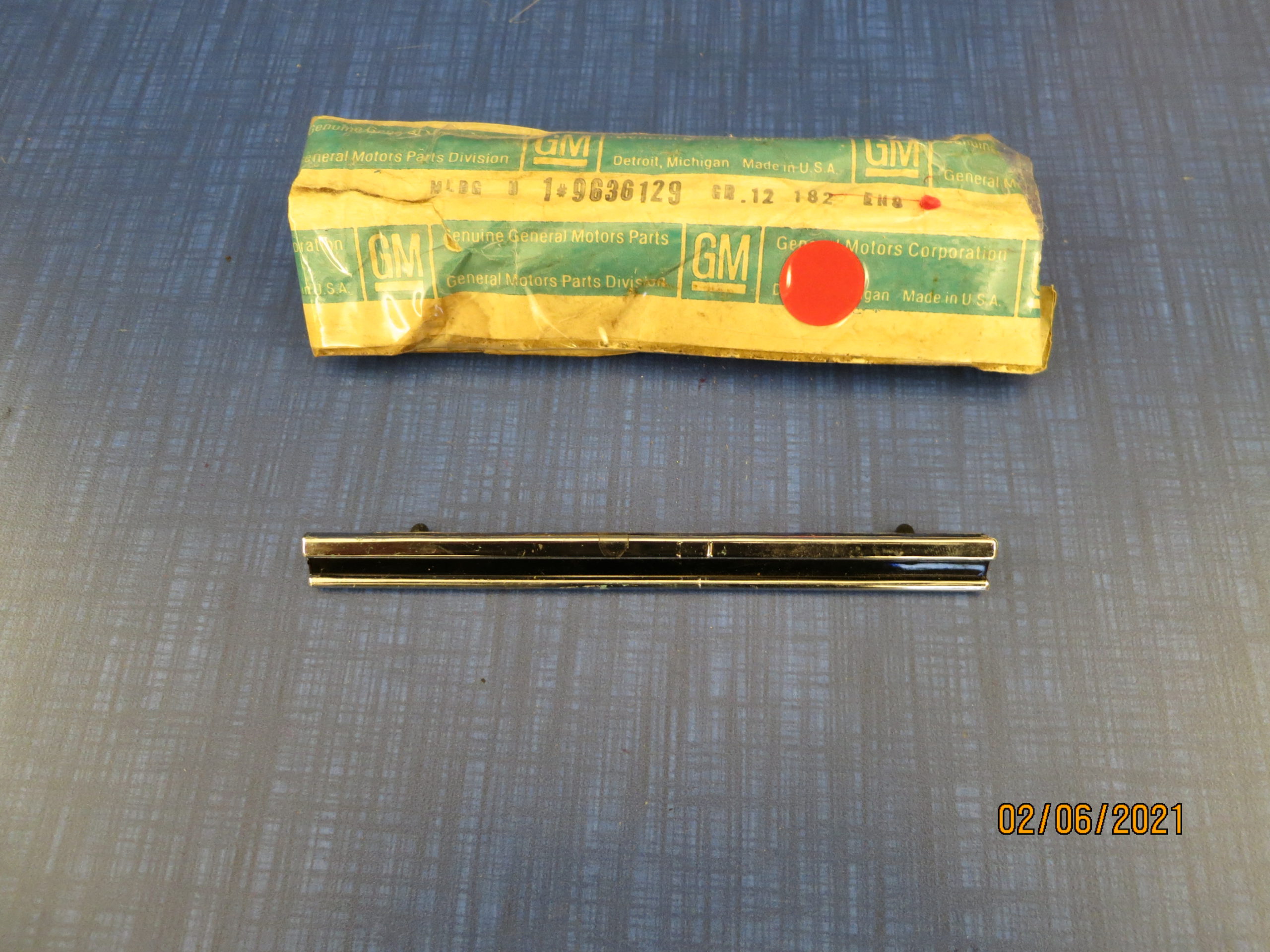 This new old stock right hand finish panel license plate pocket molding was manufactured by General Motors for use on the following models: