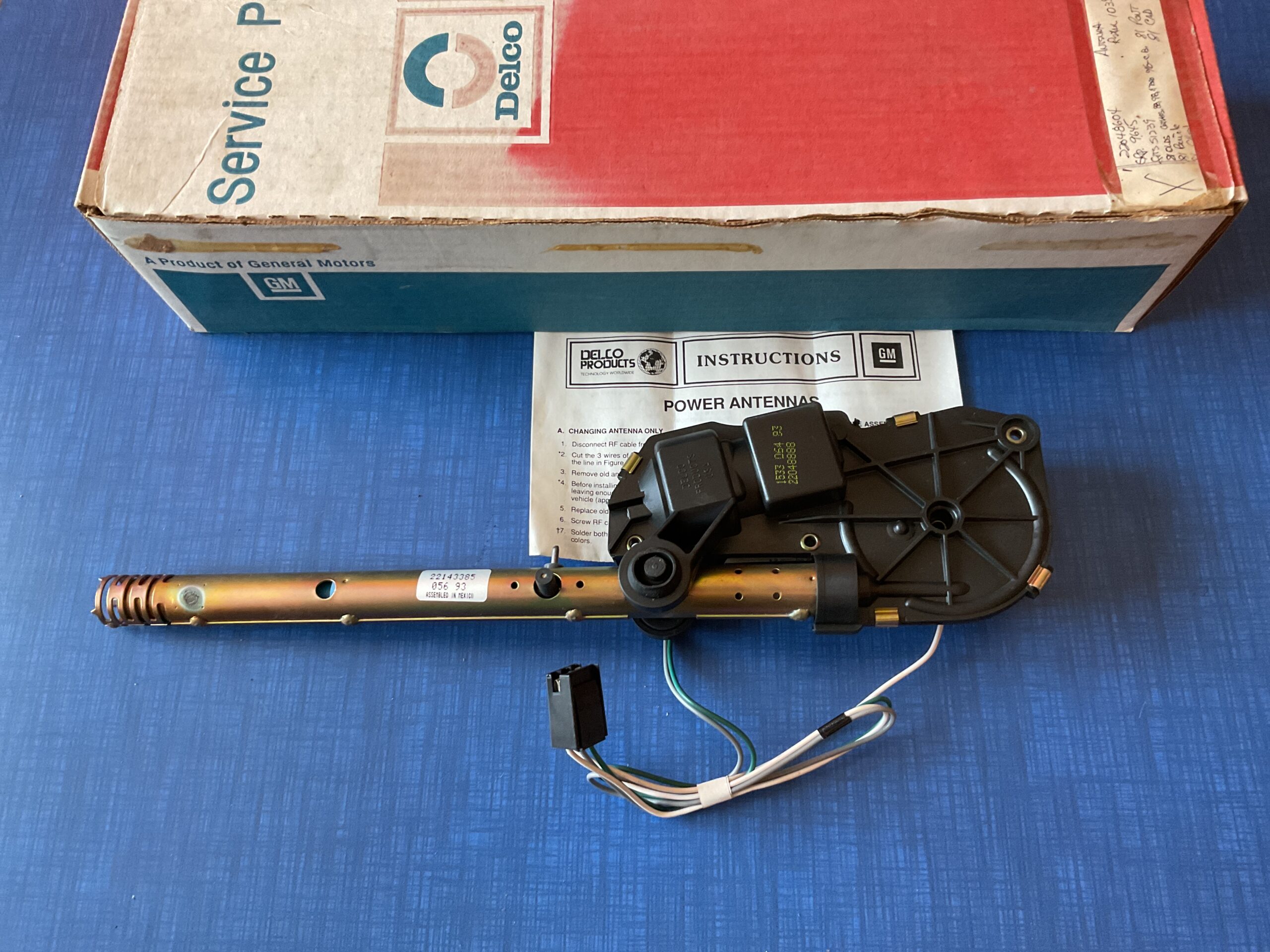 This new old stock radio electric power antenna package was manufactured by General Motors for use on the following models: