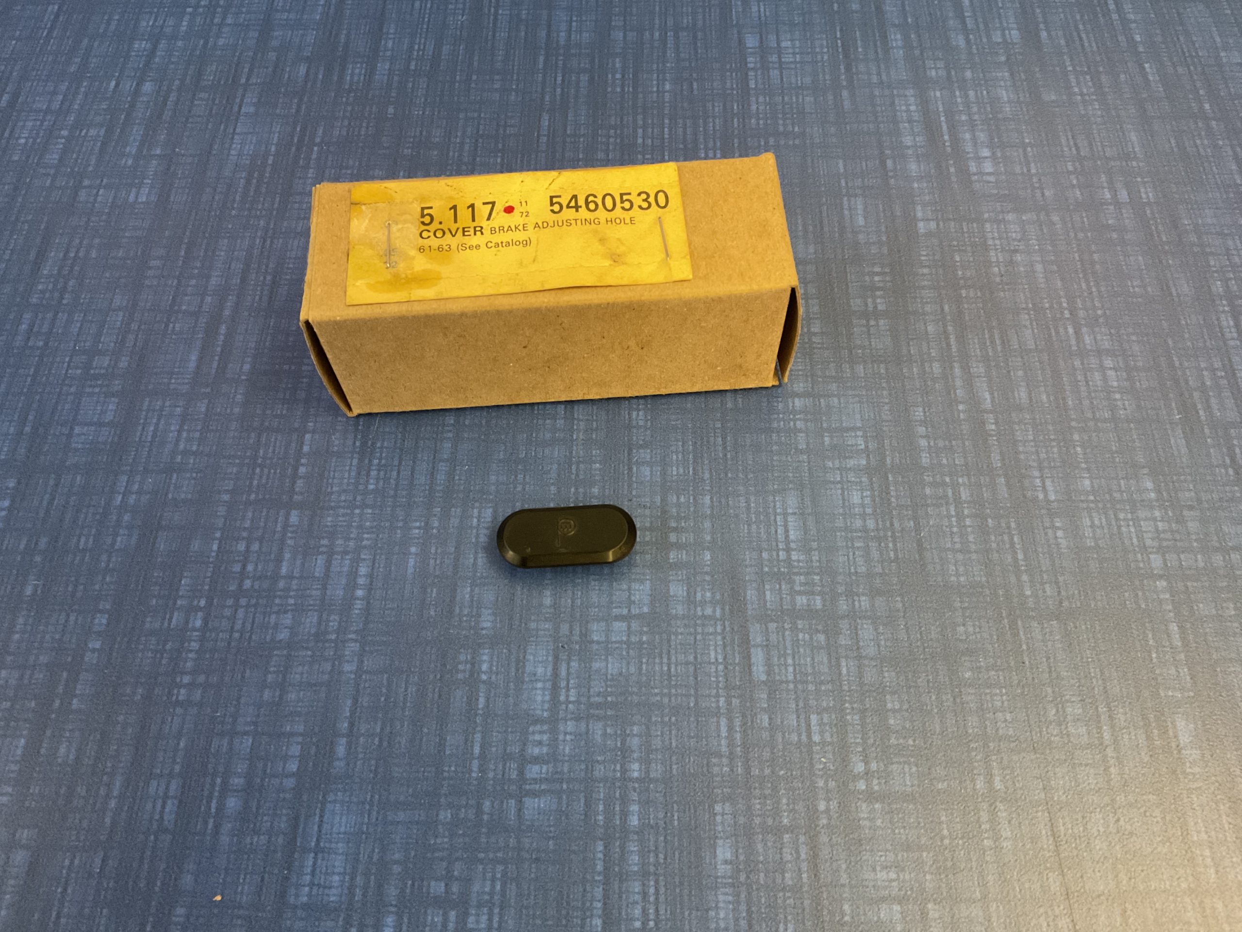 This new old stock brake adjusting hole cover was manufactured by General Motors for use on the following models: