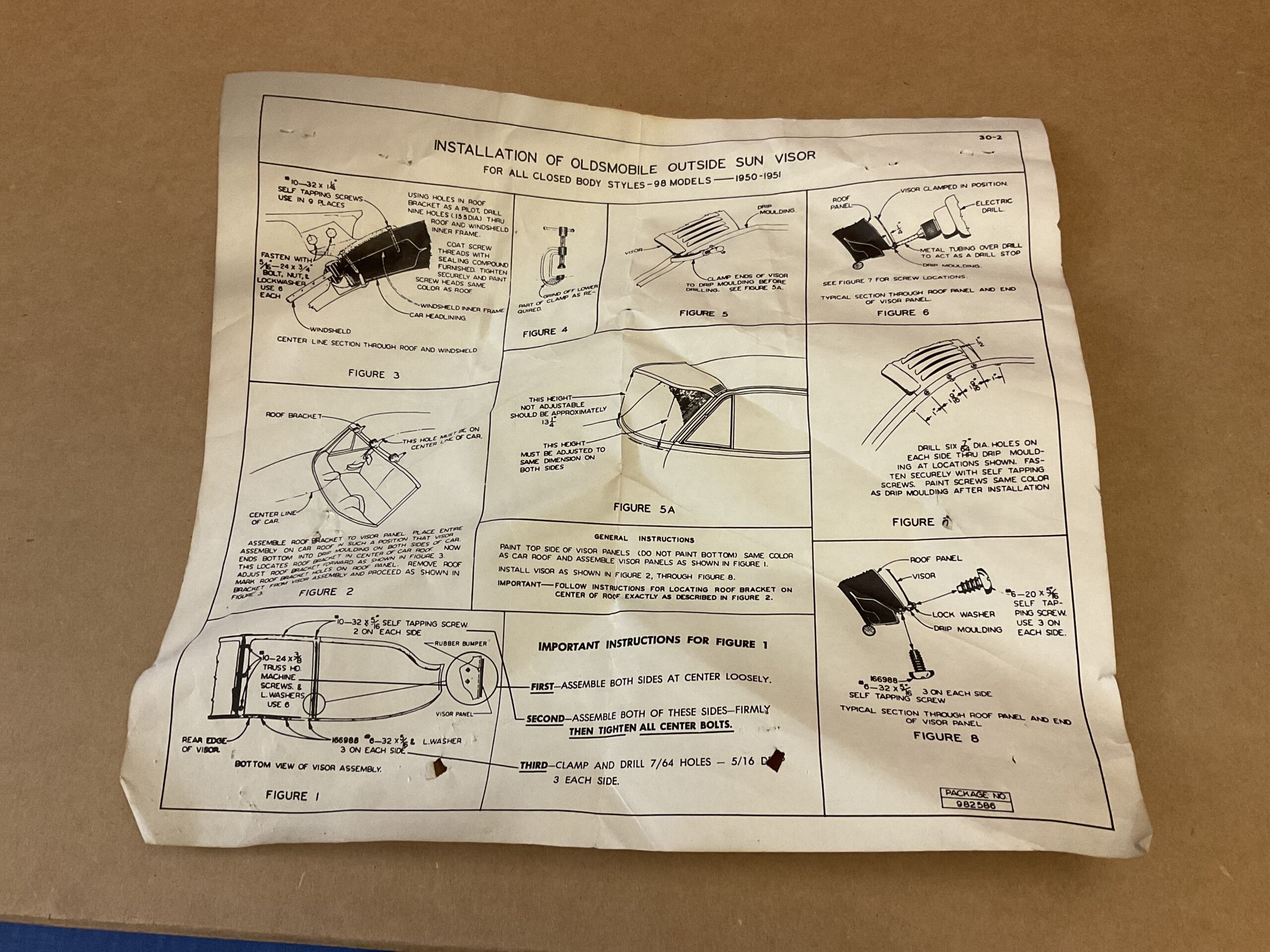This new old stock Cadet Visor Package was manufactured by General Motors for use on the following models: