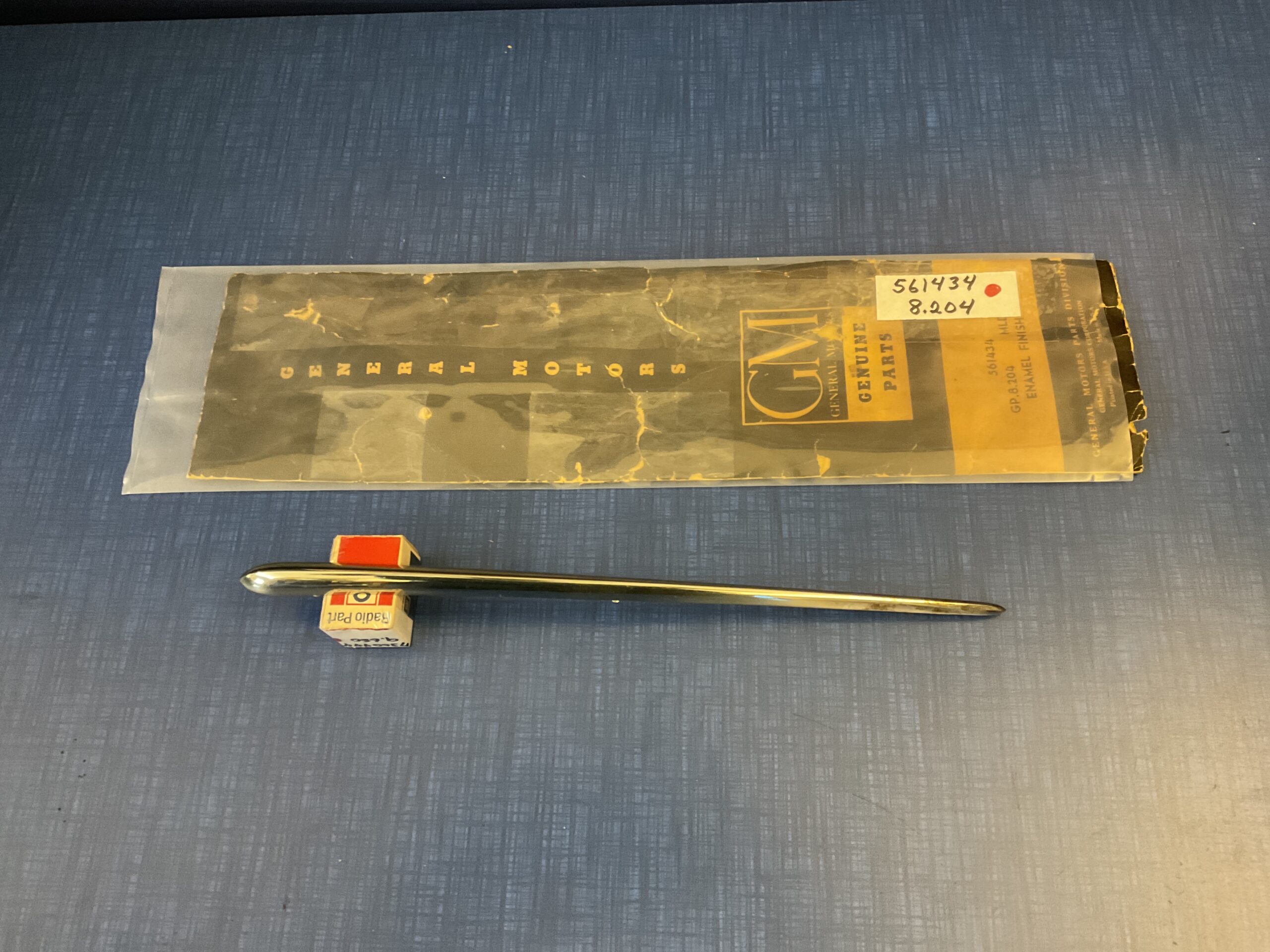 Note: This molding was painted with a clear enamel finish by GM. That clear finish is cloudy for the first 2-1/2″ on the right end and  would need to be striped( the clearcoat ) Priced accordingly