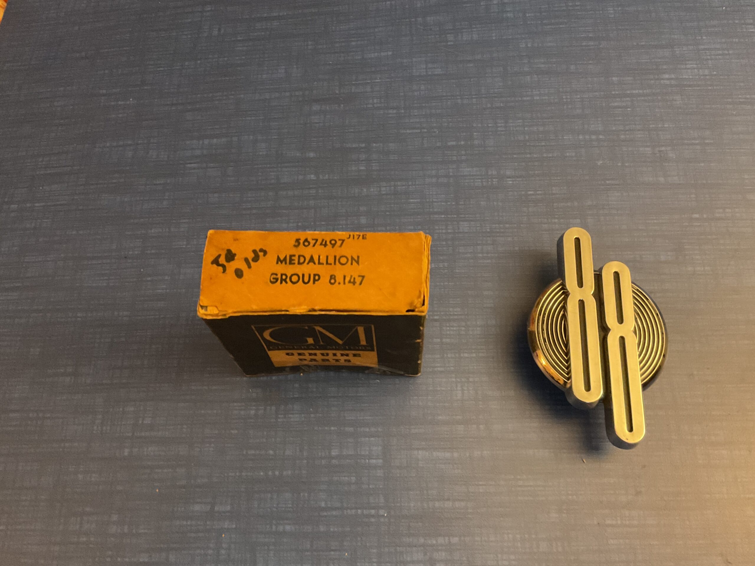 This new old stock left hand front fender medallion was manufactured by General Motors for use on the following models: