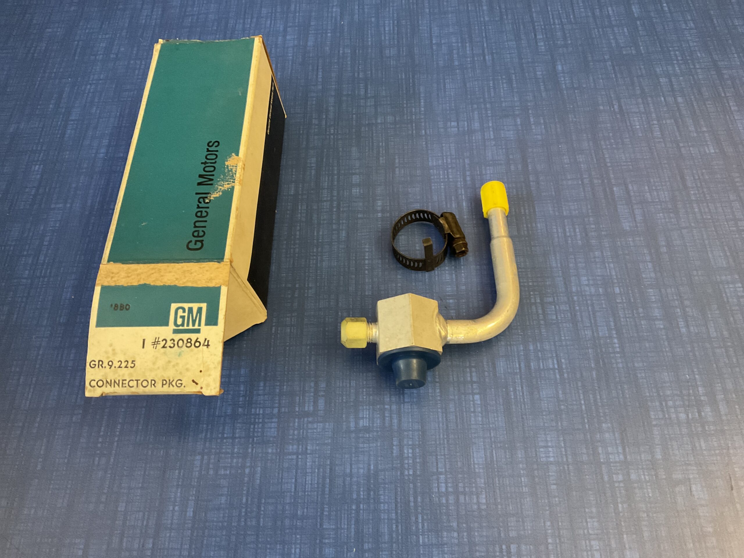 This new old stock air conditioning compressor outlet hose connector package was manufactured by General Motors for use on the following models: