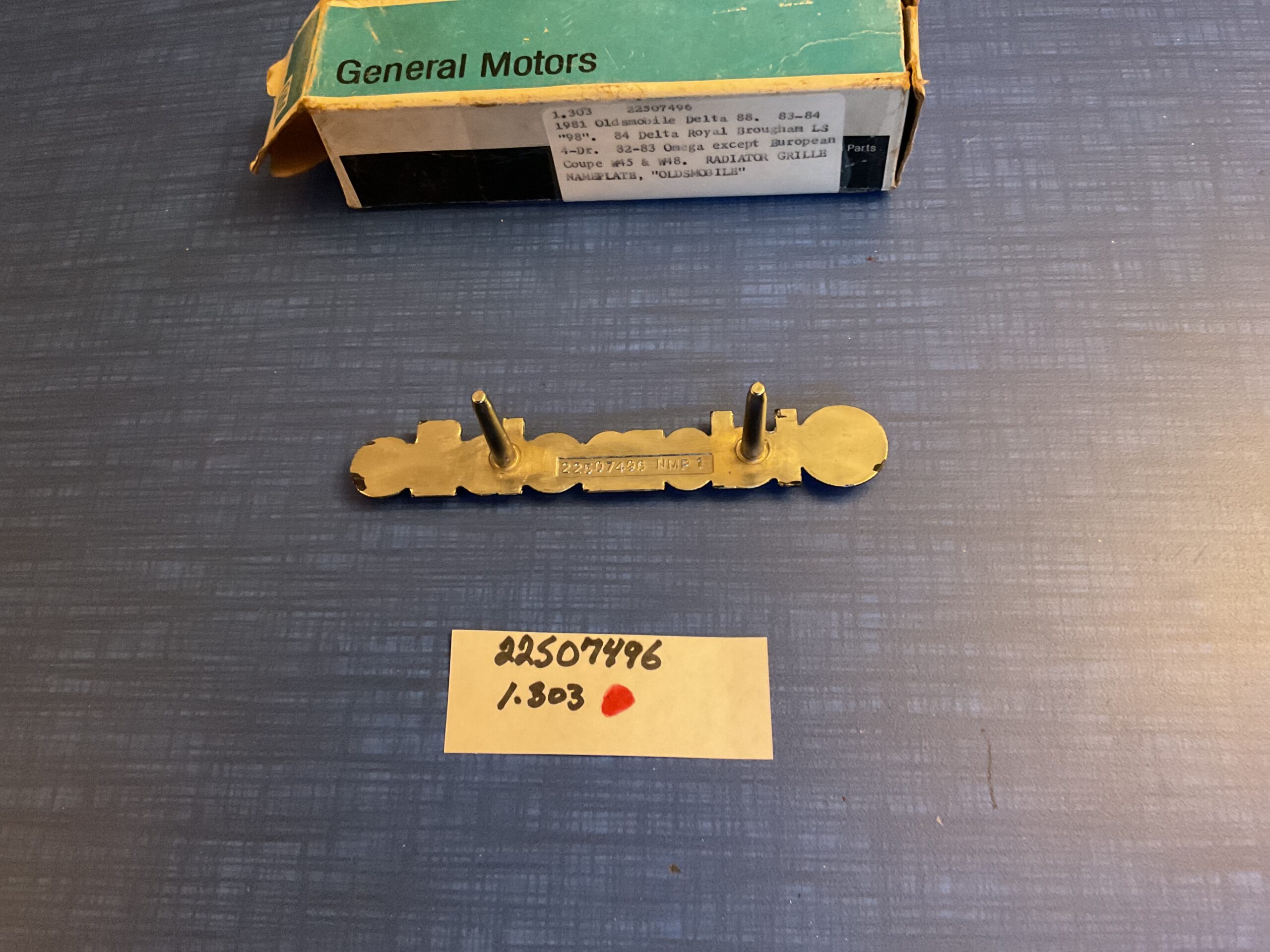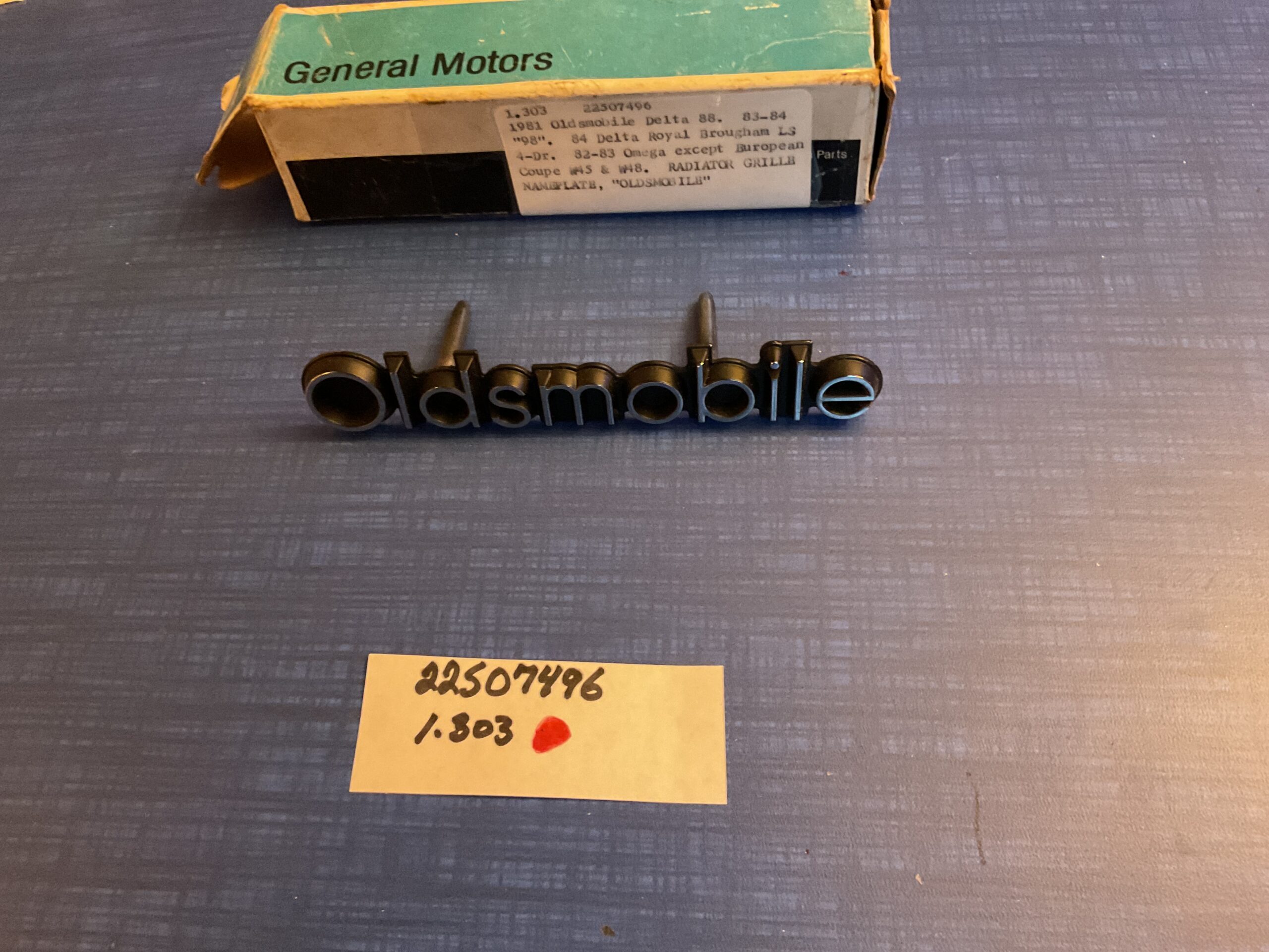 This new old stock radiator grill “Oldsmobile” name plate was manufactured by General Motors for use on the following models: