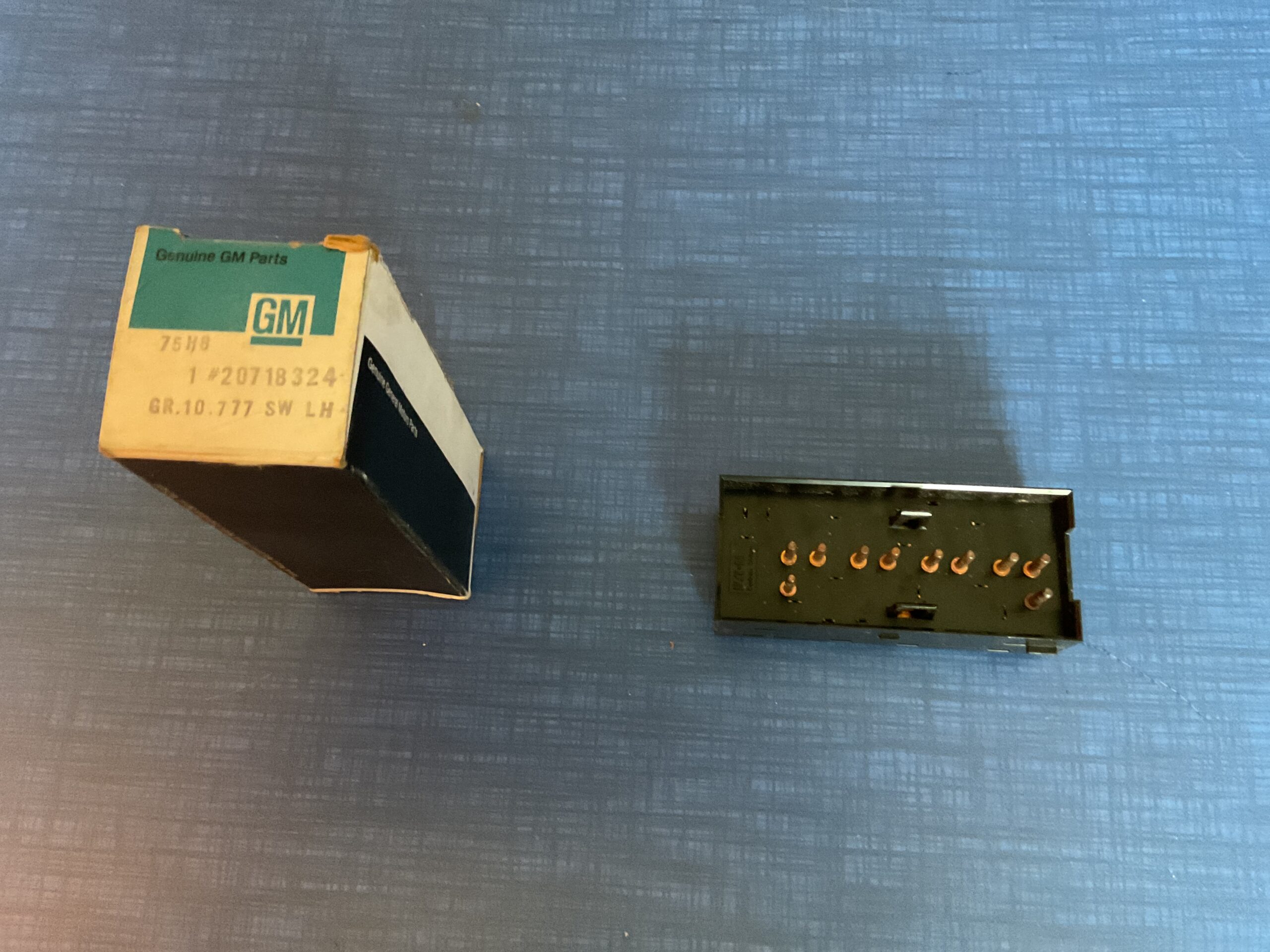 This new old stock left hand front door power window master switch was manufactured by General Motors for use on the following models: