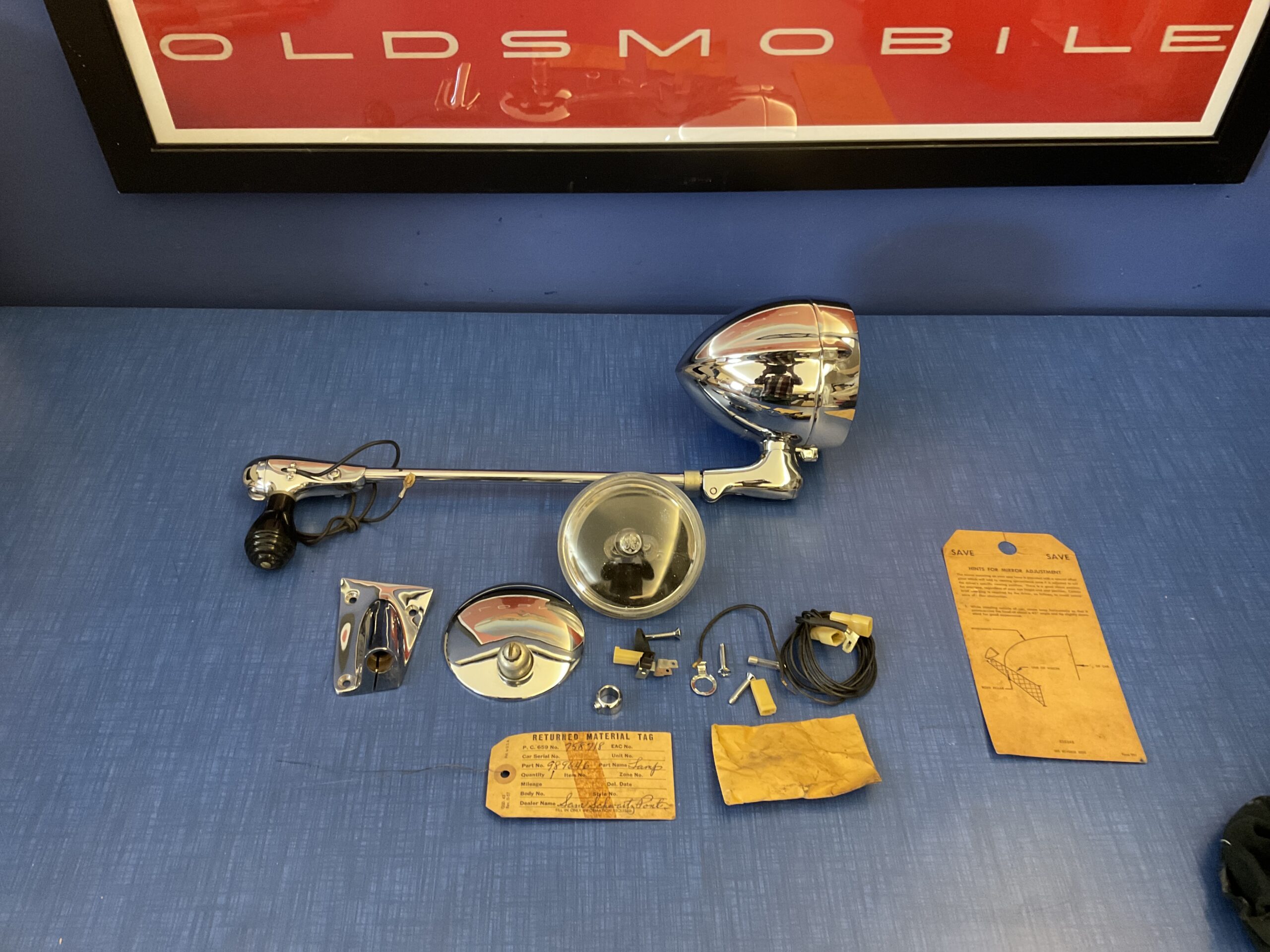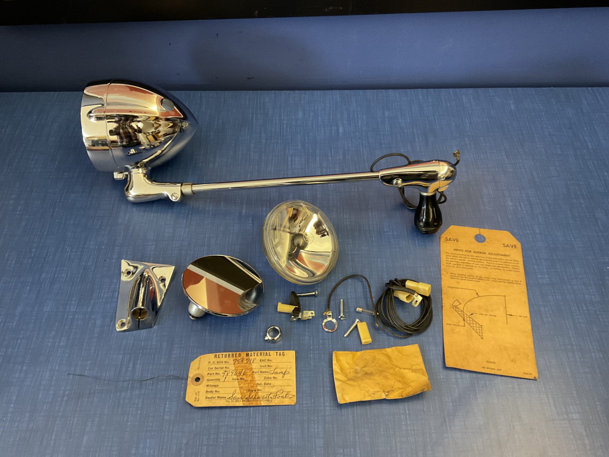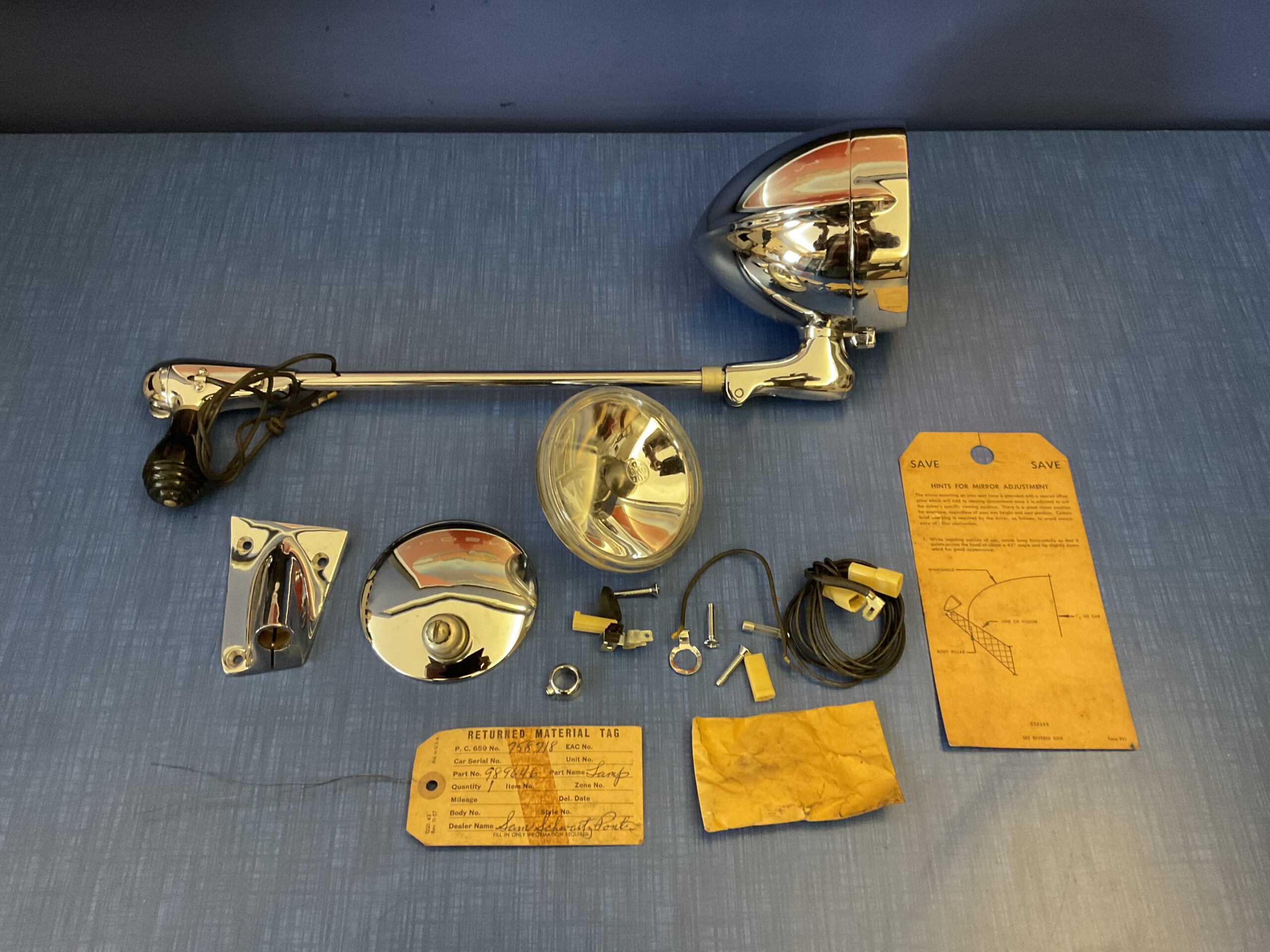 This new old stock right hand inside controlled spot light with mirror package was manufactured by General Motors for use on the following models: